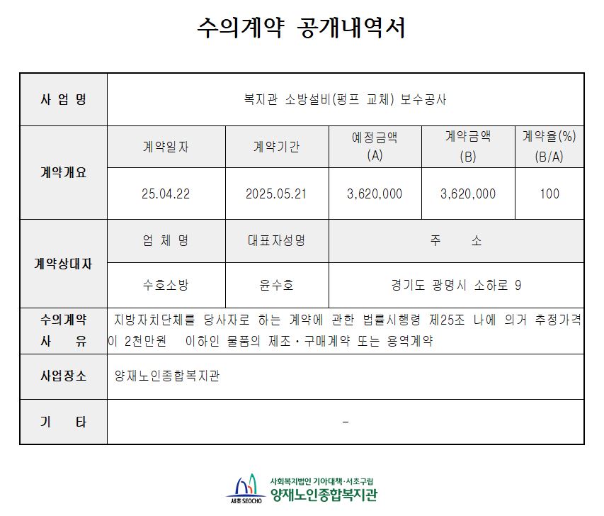 양재노인종합복지관 소방설비(펌프) 교체 공사