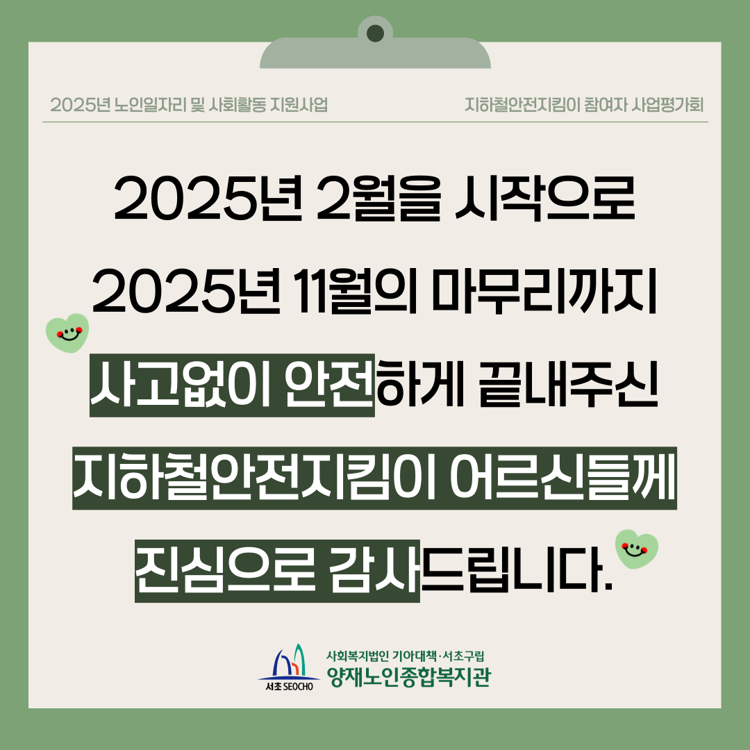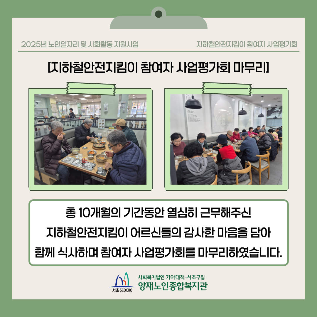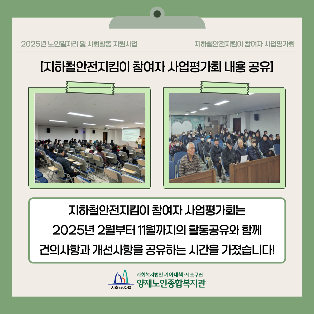 [노인사회활동지원사업] 지하철안전지킴이 참여자 사업평가회