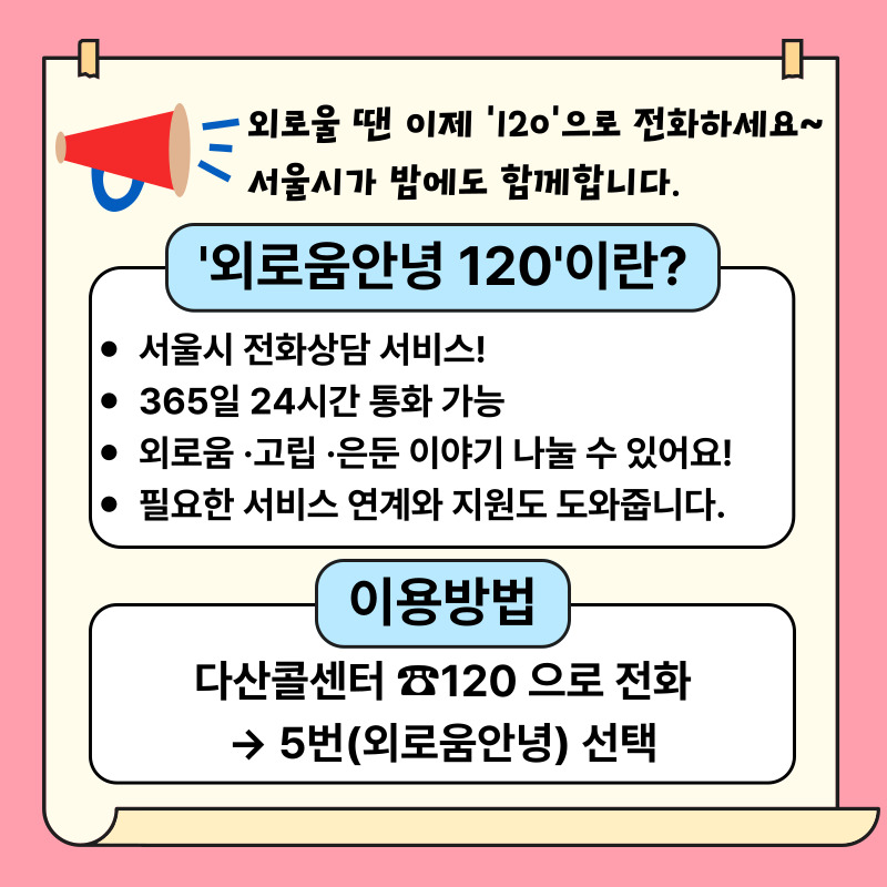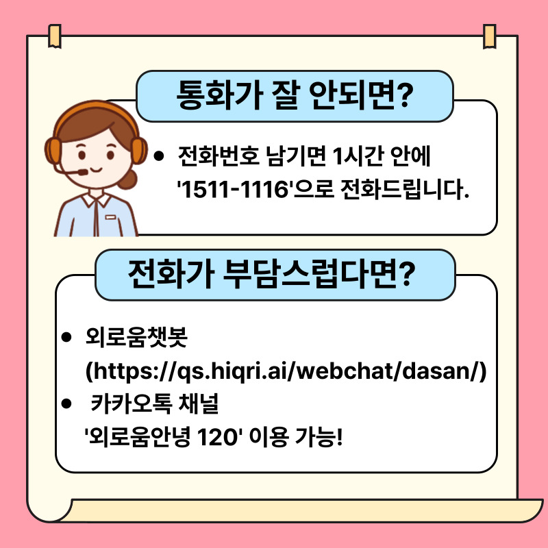 외로움으로 힘드실 때 이용해보세요.