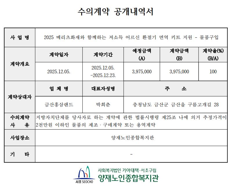 수의계약 2025 메리츠화재와 함께하는 저소득 어르신 환절기 면역 키트 지원 구성물품