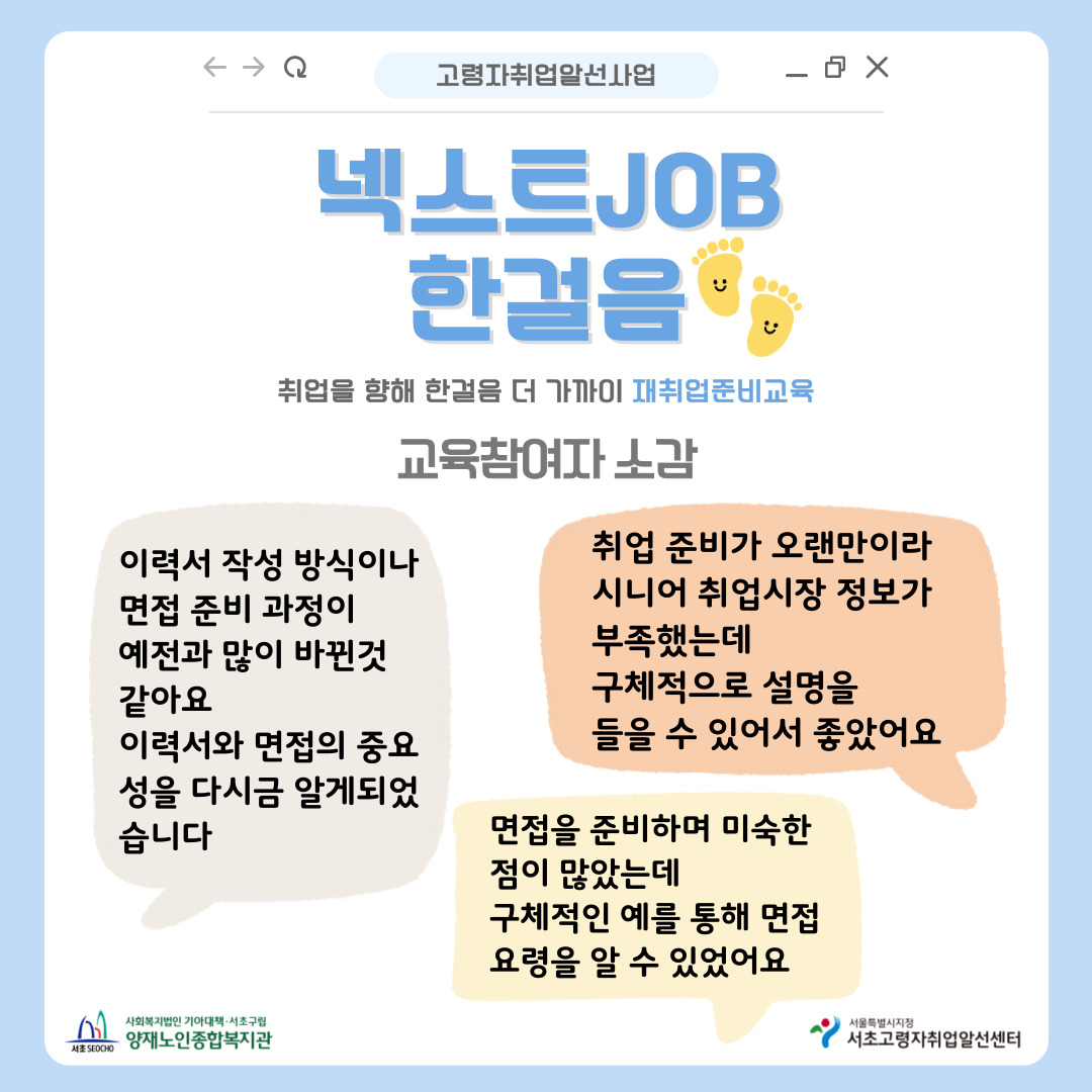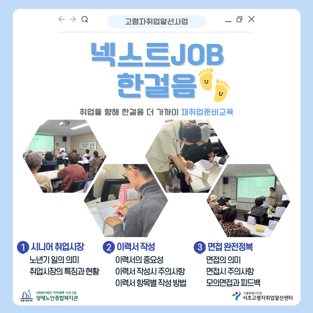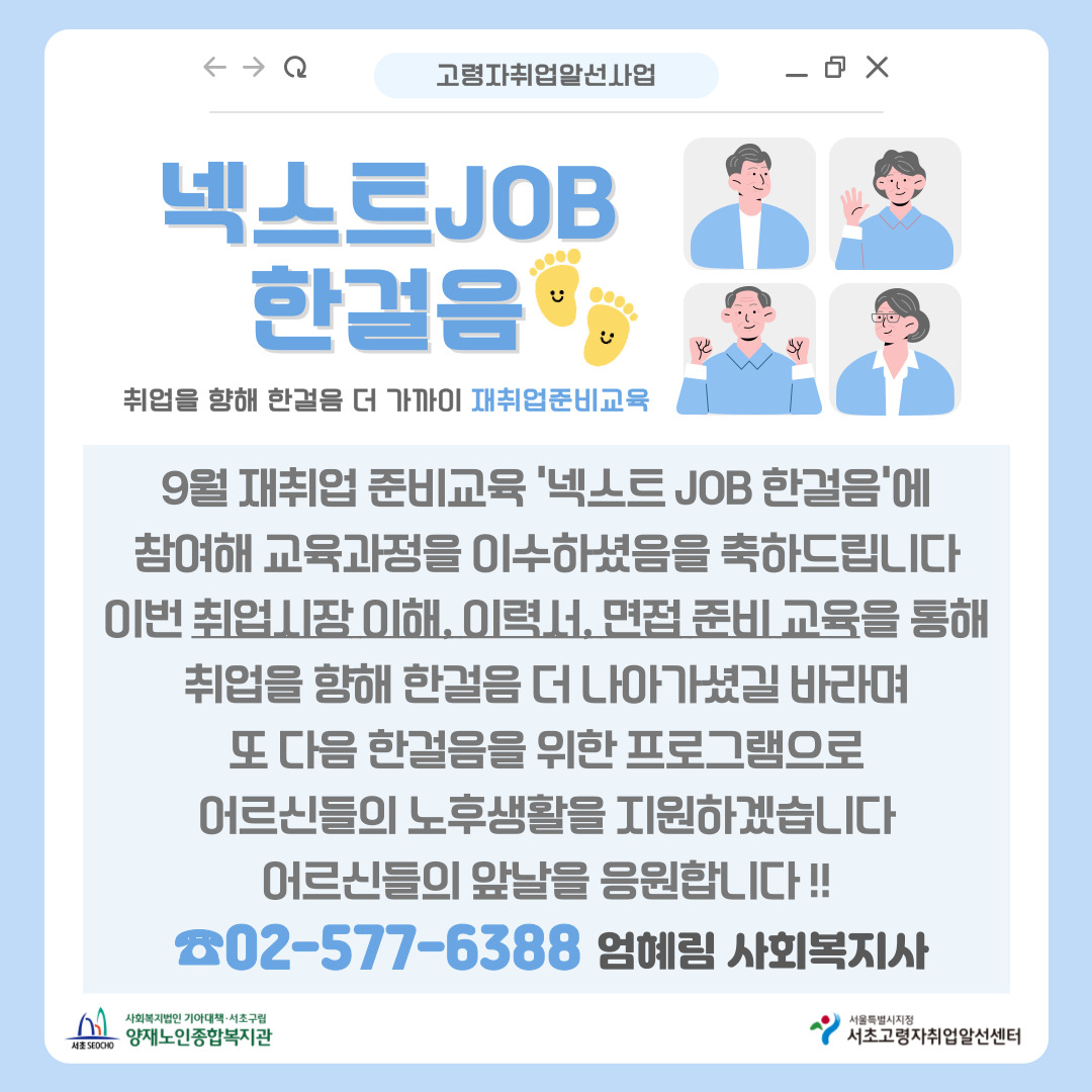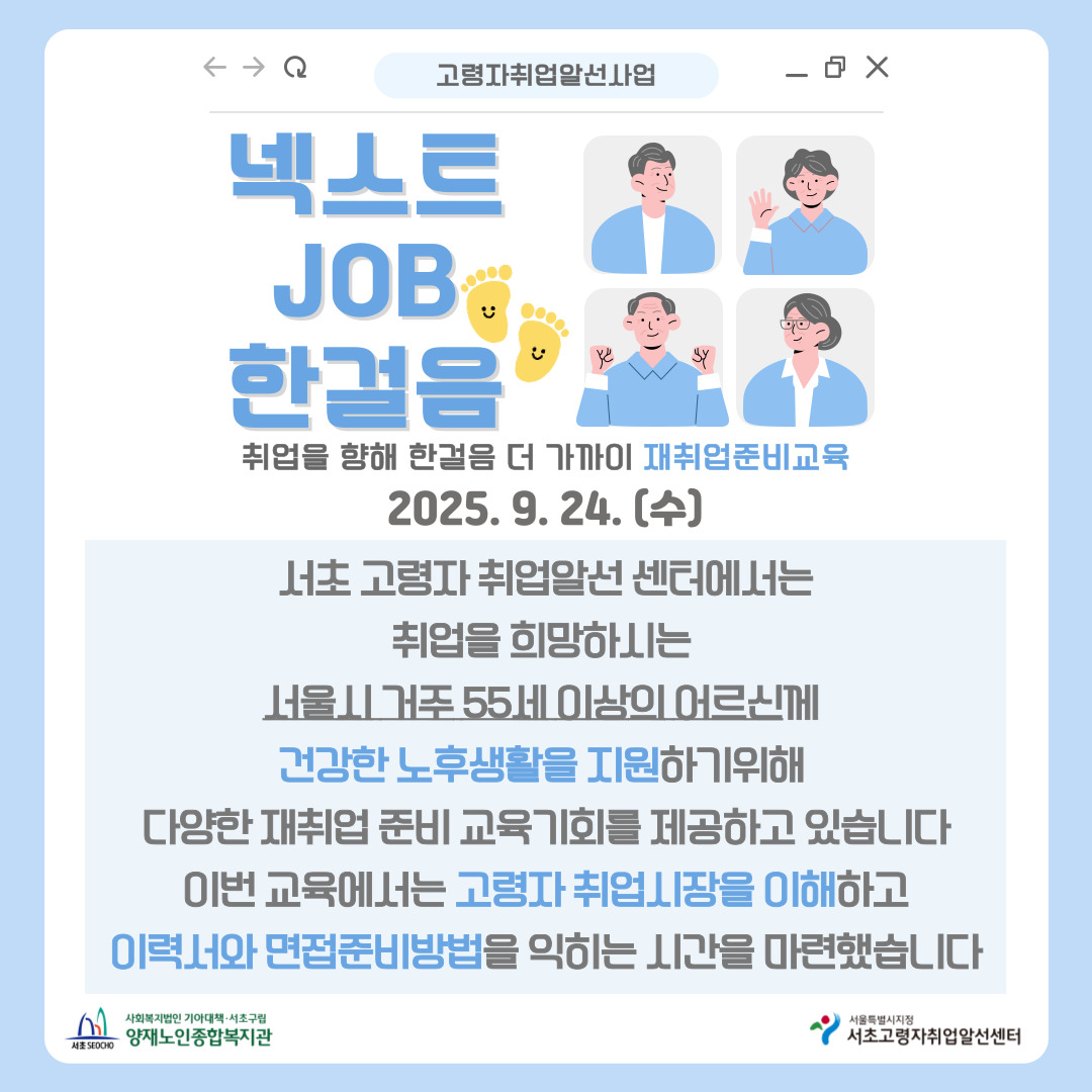[고령자취업알선] 9월 넥스트JOB 한걸음(시니어 취업시장 트랜드, 이력서작성, 면접준비)