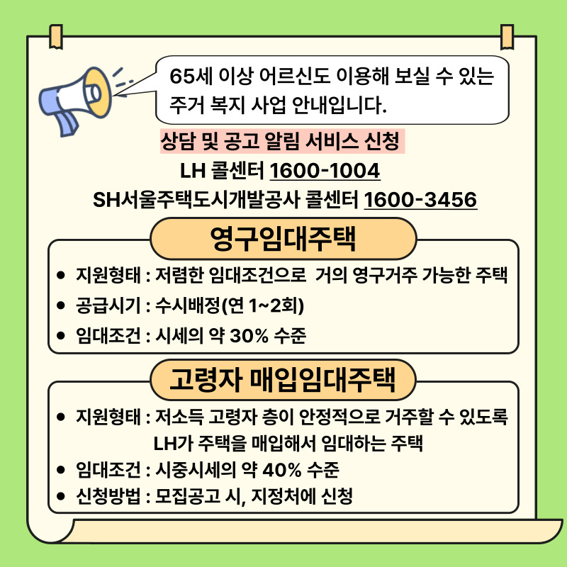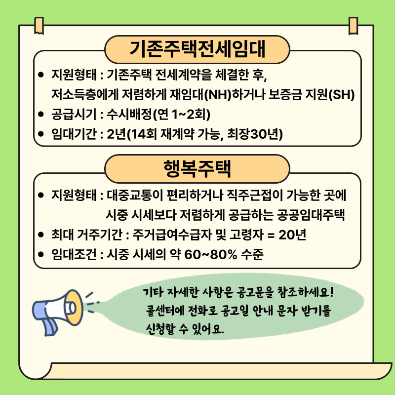 이번 복지정보는 주거지원에 대한 내용이예요.