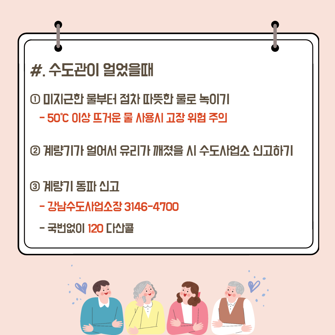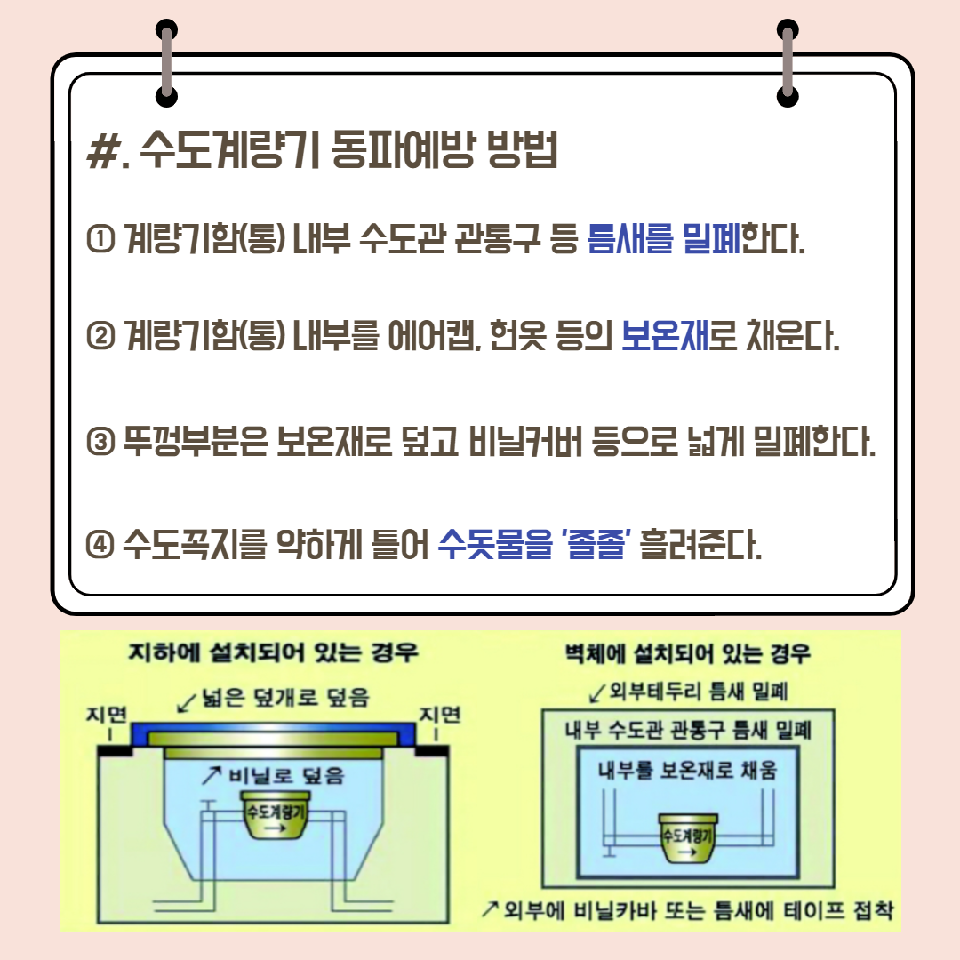 피할 순 없지만 간단한 동파예방 조치를 실천하여 따뜻하고 안전한 겨울 보내시기 바랍니다!